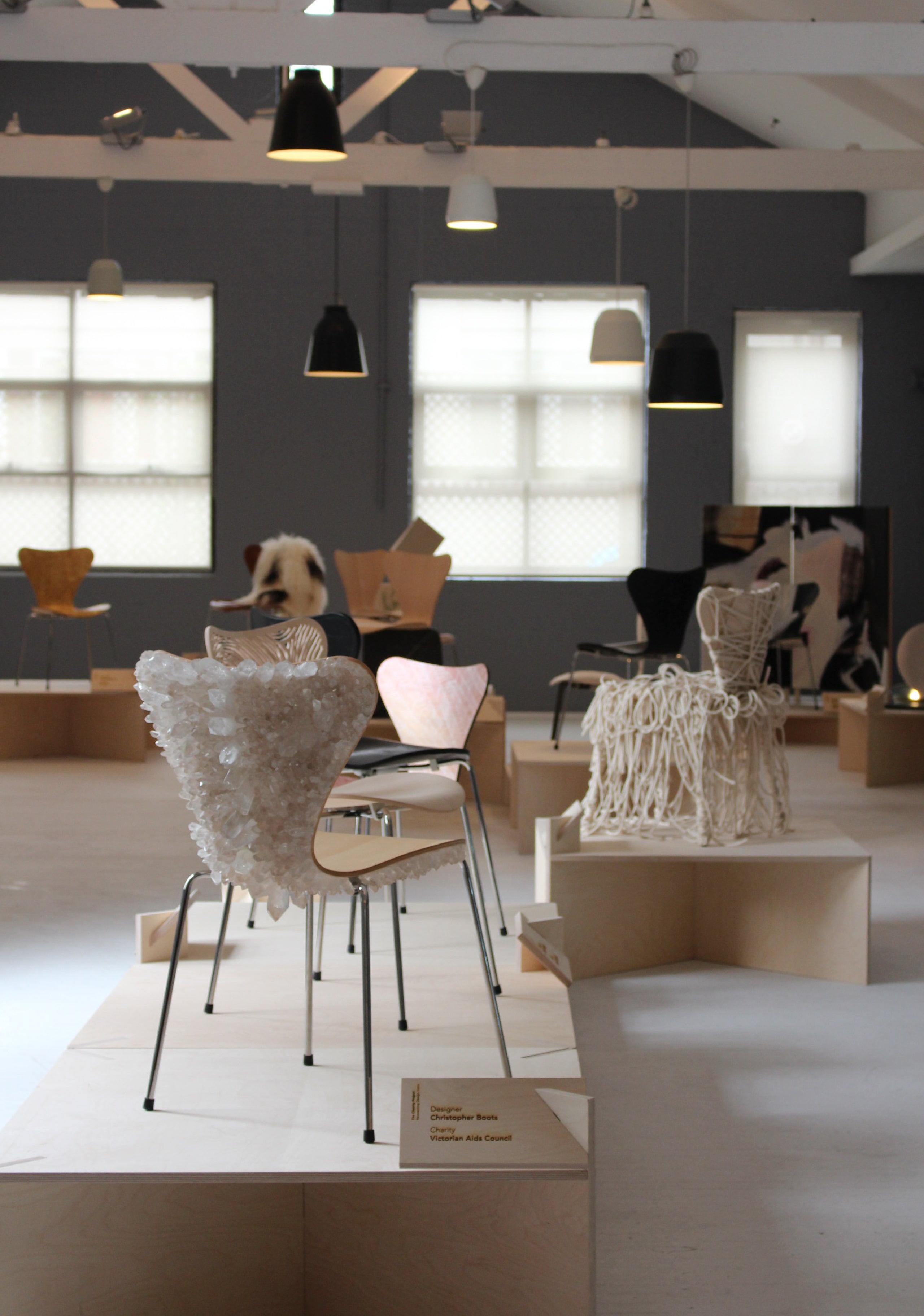 Chairity 2015 saw 20 creatives reinterpret the classic Fritz Hansen Series 7 chair by Arne Jacobsen. We extended the program with a travelling exhibition to Sydney, Melbourne and Brisbane, and raised over AUD$20,000 for 20 charities selected by our creatives.