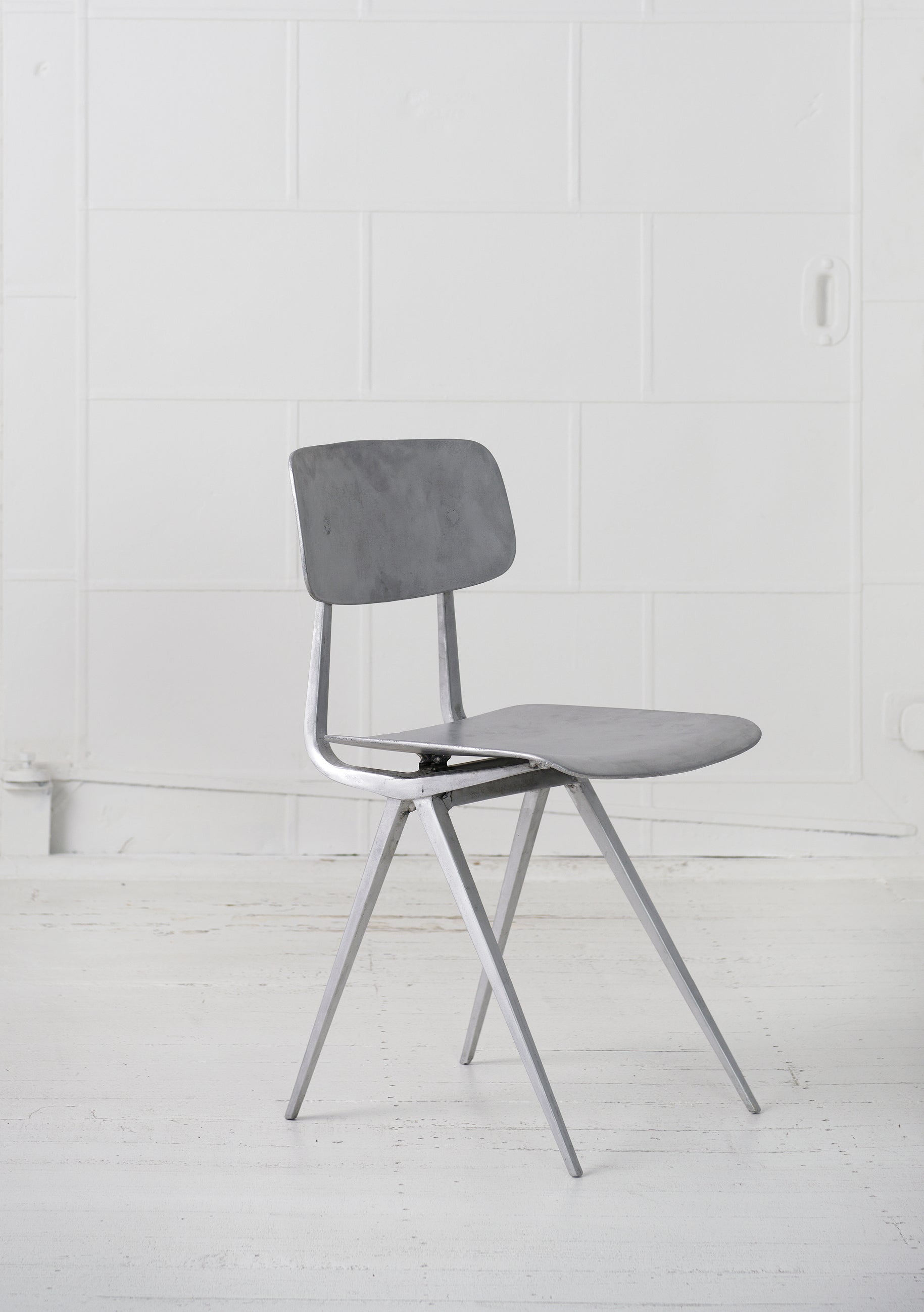 Reconstructed in cast aluminium, the 99% Result derives its name from the shrinkage incurred during the sand-casting process. We chose this simple and singular material for its durability and resilience to all weather conditions. The Aluminium is hand sanded to a soft comfortable finish, taking on the colour and light quality of the environment in which it finds itself. The patina and texture of the chair’s new materiality speaks of the manner in which it was produced and the individuality of the resulting piece.